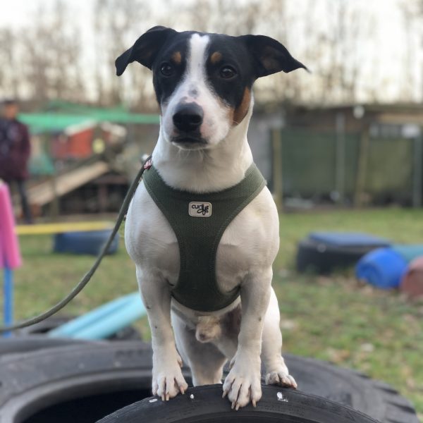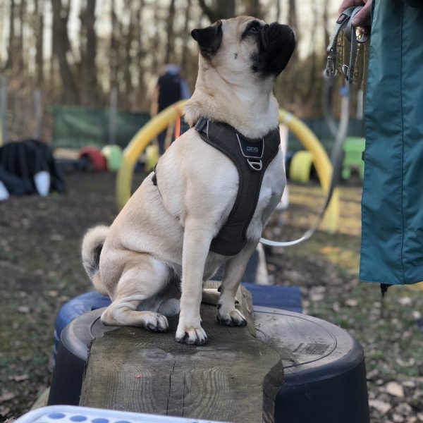 Bewusst mit den Vorder- und Hinterpfoten auf den unterschiedlichen Elementen stehen bleiben, schult den Gleichgewichtssinn.